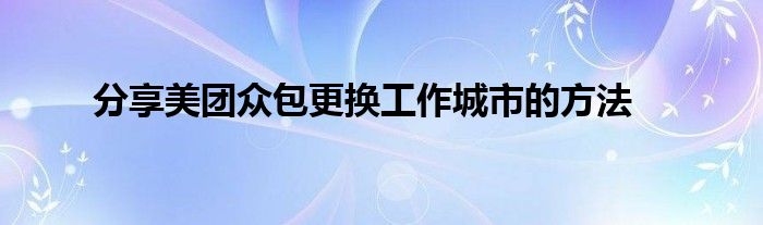 现在大家使用手机的频率越来越频繁,手机也为我们提供了许多的便利,今天小编也来说一下这个分享美团众包更换工作城市的方法相关的文章,这个操作其实不复杂,接下来就给大家介绍一下分享美团众包更换工作城市的方法,一起来看看吧: