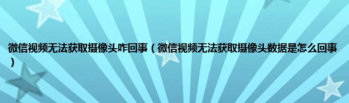 大家好,小常来为大家解答以上问题。微信视频无法获取摄像头咋回事,微信视频无法获取摄像头数据是怎么回事很多人还不知道,现在让我们一起来看看吧!