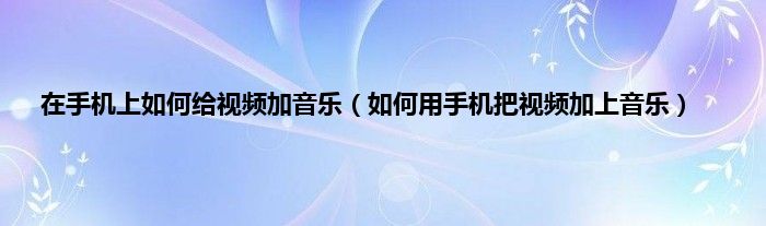 在手机上如何给视频加音乐(如何用手机把视频加上音乐)