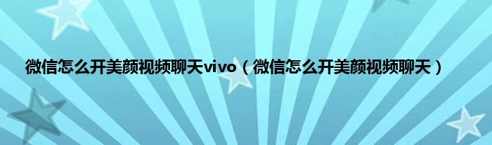 微信怎么开美颜视频聊天vivo(微信怎么开美颜视频聊天)