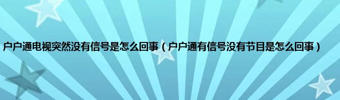 大家好,小常来为大家解答以上问题。户户通电视突然没有信号是怎么回事,户户通有信号没有节目是怎么回事很多人还不知道,现在让我们一起来看看吧!