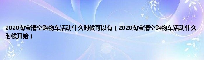 大家好,小常来为大家解答以上问题。2020淘宝清空购物车活动什么时候可以有,2020淘宝清空购物车活动什么时候开始很多人还不知道,现在让我们一起来看看吧!