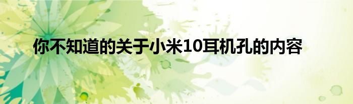 相信通过你不知道的关于小米10耳机孔的内容这篇文章能帮到你,在和好朋友分享的时候,也欢迎感兴趣小伙伴们一起来探讨。