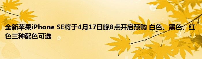 今天来聊聊一篇关于全新iPhone SE将于4月17日晚8点开启预购 白色、黑色、红色三种配色可选的文章,现在就为大家来简单介绍下全新iPhone SE将于4月17日晚8点开启预购 白色、黑色、红色三种配色可选,希望对各位小伙伴们有所帮助。