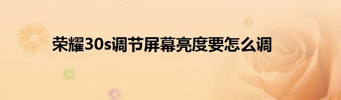 以上就是关于荣耀30s怎么调节屏幕亮度这方面的小知识了,希望对有需要的小伙伴有所帮助。