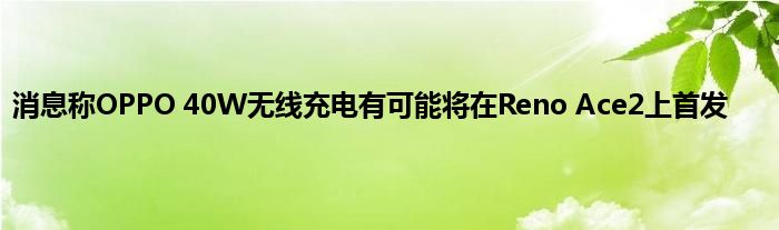 今天来聊聊一篇关于消息称OPPO 40W无线充电有可能将在Reno Ace2上首发的文章,现在就为大家来简单介绍下消息称OPPO 40W无线充电有可能将在Reno Ace2上首发,希望对各位小伙伴们有所帮助。