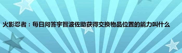 相信通过火影忍者:每日问答宇智波佐助获得交换物品位置的能力叫什么这篇文章能帮到你,在和好朋友分享的时候,也欢迎感兴趣小伙伴们一起来探讨。
