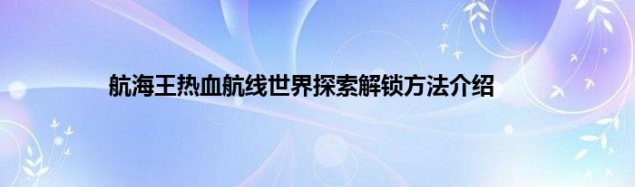 航海王热血航线当中有一个世界探究的玩法,在这些探究当中玩家可以快速的得到一些资源,玩家需要使用对应类型的伙伴参与挑战,成功通过对应关卡即可获得掉落奖励。很多玩家都不知道这个世界探究的玩法要如何才干解锁,下面就让小编给玩家带来解锁条件的介绍,希翼能够带来帮助。