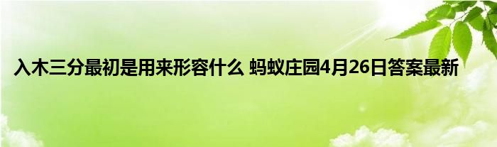 蚂蚁庄园小课堂是每天玩家都要来参与进来的一个玩法了,在这里玩家可以回到一些比较故意思的问题,关键是你还能得到饲料。其中4月26日最新问题已经带来,今天问题是入木三分最初是用来形容什么,不少玩家不知道答案是什么了,这道题目和成语相关,下面就来一起看下蚂蚁庄园4月26日答案最新的介绍。