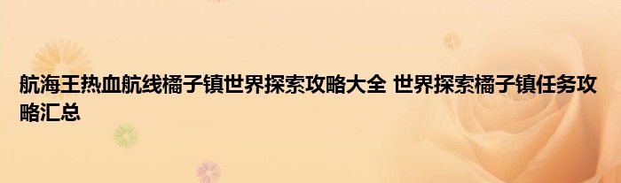 航海王热血航线橘子镇世界探究攻略大全,世界探究是游戏中很主要的玩法之一,玩家可以在各个小镇中探究,触发各种任务,剧情等等,完成任务后可以获得很多的奖励,这次小编带来的是橘子镇的任务攻略汇总,下面就来一起来看看吧。