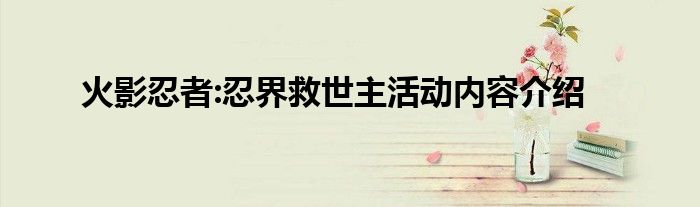 小编今天给各位玩家朋友们带来的是火影忍者:忍界救世主活动内容介绍,有记得的玩家朋友吗?不记得也没有关系,小编已经帮助大家把火影忍者:忍界救世主活动内容介绍找了出来,你只需要动动你的小手就可以轻松知道啦,快来瞧一瞧吧。