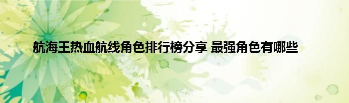 航海王热血航线这个游戏是根据动漫来改编过来的,有很多海贼王当中浮现的角色,很多玩家都想要知道培养什么角色会比较好,毕竟角色的强度在游戏里面还是比较重要的,那下面就让小编给玩家们带来这篇角色排行榜的介绍,一起看下游戏当中究竟哪些角色是值得玩家培养的吧。