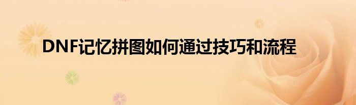 在DNF这一游戏当中,包含有非常多的活动,而其中就包含有记忆拼图活动,而你要是想要对记忆拼图活动进行参与的话,则你就需要掌握一定的技巧,接下来,我们就一起来看看吧。