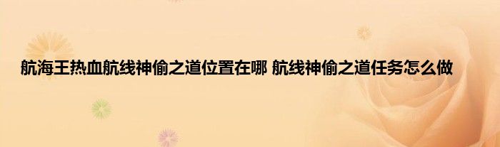 航海王热血航线神偷之道剧情图鉴中玩家需要收集回顾点,很多玩家都在不知道回顾点在哪里,神偷之道位置在哪里,因此很多玩家想知道航海王热血航线神偷之道在哪里?蚕豆小编为您带来航海王热血航线神偷之道位置。