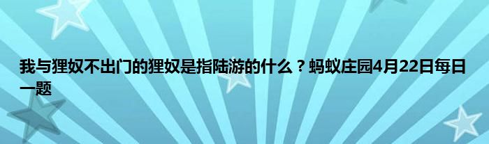 陆游是我国古代有名的诗词大家,蚂蚁庄园4月22日的问题也和陆游有关,问题是溪柴火软蛮毡暖,我与狸奴不出门中的狸奴是指陆游的什么,是他的孩子还是宠物呢,答对可以获得奖励,下面就来尾随小编一起来了解一下吧。