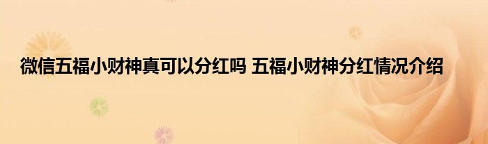 微信五福小财神是现在微信小程序上比较热门的一款赚钱游戏,从官宣的宣传画面上来看是达成指定条件后微信秒提现,很多网友将信将疑,那么微信五福小财神真可以分红吗?蚕豆小编为您带来五福小财神分红介绍。