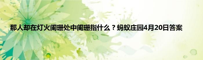 “蓦然回首,那人却在灯火阑珊处”中,“阑珊”是指灯火?蚂蚁庄园每天都会问玩家一些问题,答对了的话就能领取饲料给小鸡喂食。4月20日的最新问题发布,以下是详细答案,一起来看看吧。