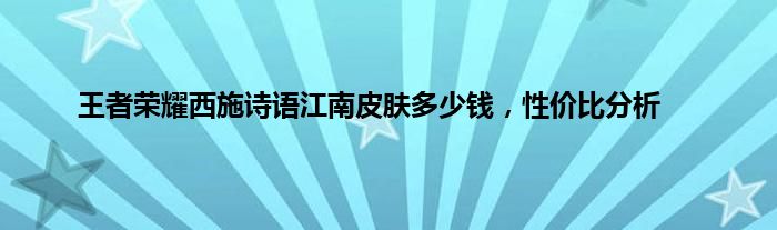 王者荣耀忽然就给大家一个惊喜,毫无预兆的,西施的新皮肤就出来了,那么,西施诗语江南皮肤多少钱?很多玩家喜欢西施诗语江南这款皮肤,那么多少钱可以入手呢?本次小编就给大家带来了西施诗语江南皮肤价格分享,希翼对小伙伴们有所帮助。
