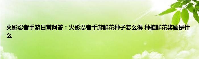 火影忍者手游日常问答:火影忍者手游鲜花种子怎么得种植鲜花奖励是什么