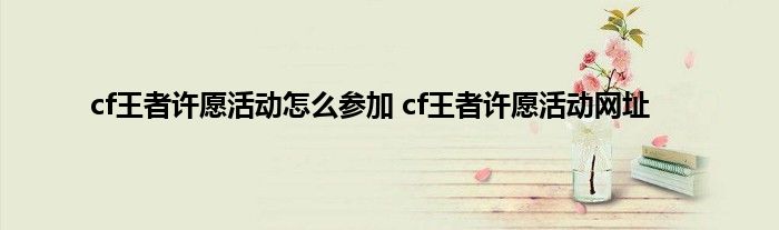 cf王者许愿活动怎么参加?CF新活动王者许愿活动在4月13日正式开启。这次活动的玩法有三种,除了一般 的抽奖以外,还有许愿池和兑换区两种。而奖励也有王者-春、王者之决觉醒版、雷神-耀金皮肤等限定,下面是具体的活动地址,一起来看看吧。