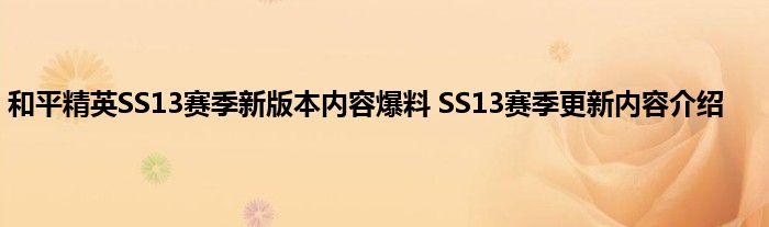 以上就是和平精英SS13赛季更新新版本爆料的相关内容了。