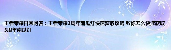 今天来聊聊关于王者荣耀日常问答:王者荣耀3周年南瓜灯快速获取攻略,教你怎么快速获取3周年南瓜灯的文章,游戏是很多人的选择,但是游戏玩多了也会身心疲惫,现在就为大家来简单介绍下王者荣耀日常问答:王者荣耀3周年南瓜灯快速获取攻略,教你怎么快速获取3周年南瓜灯,希望对各位小伙伴们有所帮助。