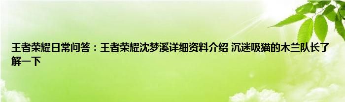 以上就是王者荣耀日常问答:王者荣耀沈梦溪详细资料介绍,沉迷吸猫的木兰队长了解一下的推荐,相信通过王者荣耀日常问答:王者荣耀沈梦溪详细资料介绍,沉迷吸猫的木兰队长了解一下这篇文章能帮到你,也欢迎对游戏很感兴趣小伙伴们一起来探讨。