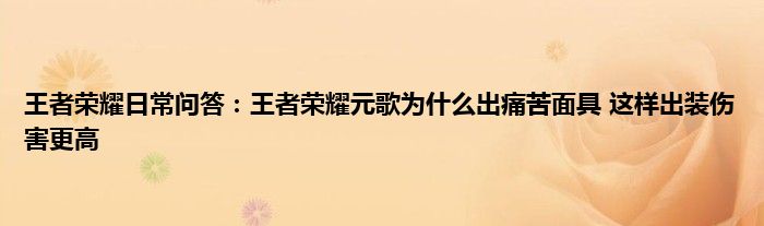 小编今天给各位玩家朋友们带来的是王者荣耀日常问答:王者荣耀元歌为什么出痛苦面具,这样出装伤害更高,有记得的玩家朋友吗?不记得也没有关系,小编已经帮助大家把王者荣耀日常问答:王者荣耀元歌为什么出痛苦面具,这样出装伤害更高找了出来,你只需要动动你的小手就可以轻松知道啦,快来瞧一瞧吧。