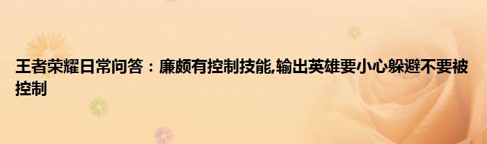 廉颇有控制技能,输出英雄要小心躲避不要被控制?