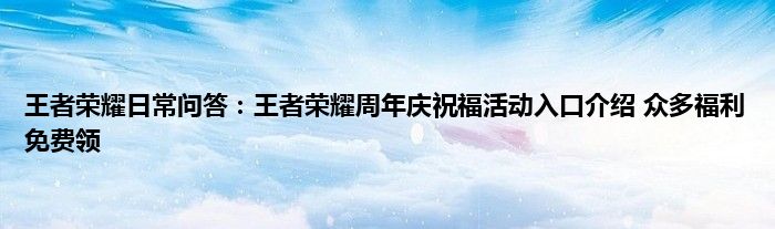 以上就是王者荣耀日常问答:王者荣耀周年庆祝福活动入口介绍,众多福利免费领的推荐,相信通过王者荣耀日常问答:王者荣耀周年庆祝福活动入口介绍,众多福利免费领这篇文章能帮到你,也欢迎对游戏很感兴趣小伙伴们一起来探讨。