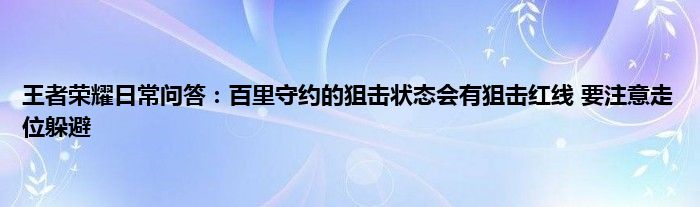以上就是王者荣耀日常问答:百里守约的狙击状态会有狙击红线,要注意走位躲避的推荐,相信通过王者荣耀日常问答:百里守约的狙击状态会有狙击红线,要注意走位躲避这篇文章能帮到你,也欢迎对游戏很感兴趣小伙伴们一起来探讨。
