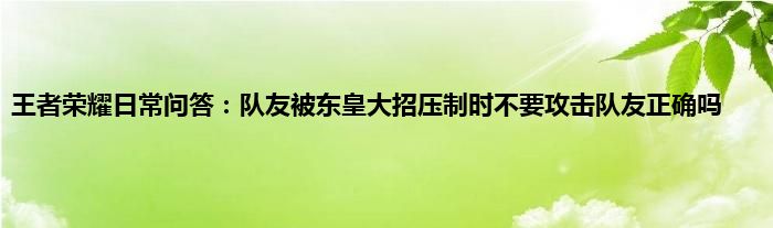 小编今天给各位玩家朋友们带来的是王者荣耀日常问答:队友被东皇大招压制时不要攻击队友正确吗,有记得的玩家朋友吗?不记得也没有关系,小编已经帮助大家把王者荣耀日常问答:队友被东皇大招压制时不要攻击队友正确吗找了出来,你只需要动动你的小手就可以轻松知道啦,快来瞧一瞧吧。