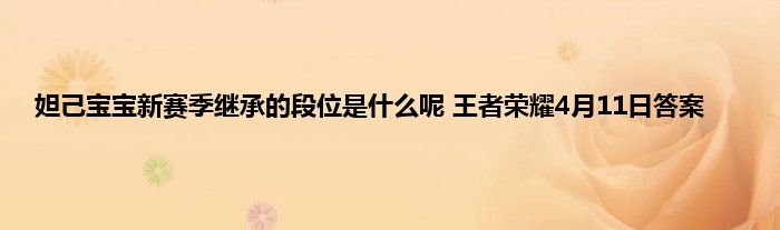 王者荣耀在微信公众号上每天都有一个问题需要玩家来回答,今天的问题是昨日推文中开头提到的,妲己宝宝新赛季继承的段位是什么呢?(四个字),答对的可以获得抽奖资格,有可能获得永久皮肤,下面就来跟着小编一起来看看具体的答案吧。