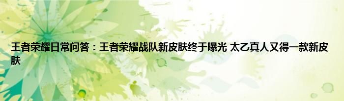 以上就是王者荣耀日常问答:王者荣耀战队新皮肤终于曝光,太乙真人又得一款新皮肤的推荐,相信通过王者荣耀日常问答:王者荣耀战队新皮肤终于曝光,太乙真人又得一款新皮肤这篇文章能帮到你,也欢迎对游戏很感兴趣小伙伴们一起来探讨。