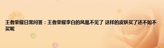 小编今天给各位玩家朋友们带来的是王者荣耀日常问答:王者荣耀李白的凤凰不见了,这样的皮肤买了还不如不买呢,有记得的玩家朋友吗?不记得也没有关系,小编已经帮助大家把王者荣耀日常问答:王者荣耀李白的凤凰不见了,这样的皮肤买了还不如不买呢找了出来,你只需要动动你的小手就可以轻松知道啦,快来瞧一瞧吧。