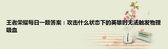 以上就是王者荣耀每日一题答案:攻击什么状态下的英雄时无法触发物理吸血的推荐,相信通过王者荣耀每日一题答案:攻击什么状态下的英雄时无法触发物理吸血这篇文章能帮到你,也欢迎对游戏很感兴趣小伙伴们一起来探讨。