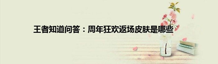以上就是王者知道问答:周年狂欢返场皮肤是哪些的推荐,相信通过王者知道问答:周年狂欢返场皮肤是哪些这篇文章能帮到你,也欢迎对游戏很感兴趣小伙伴们一起来探讨。
