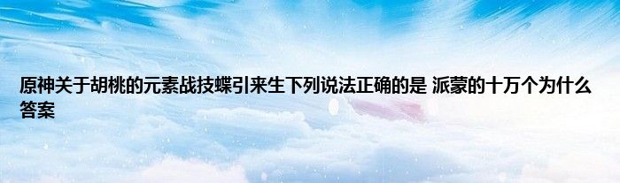 派蒙的十万个为什么大家都答对了吗?相信很多小伙伴都不知道【关于胡桃的元素战技蝶引来生下列说法正确的是】的答案,毕竟抽不到胡桃555555。下面小编给大家介绍一下这个问题的答案,希翼可以帮到大家~