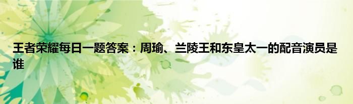 以上就是王者荣耀每日一题答案:周瑜、兰陵王和东皇太一的配音演员是谁的推荐,相信通过王者荣耀每日一题答案:周瑜、兰陵王和东皇太一的配音演员是谁这篇文章能帮到你,也欢迎对游戏很感兴趣小伙伴们一起来探讨。