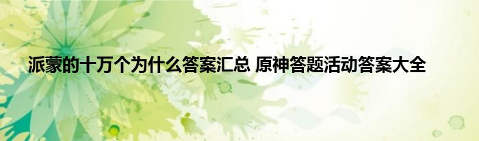 原神派蒙的十万个为什么第二期的答案是什么?原神答题活动的第二期终于来了,玩家们都对派蒙的十万个为什么第二期的题目和答案都很感兴趣,那么所有想知道答案的玩家们就随蚕豆小编一起来看看下方的答案汇总吧!