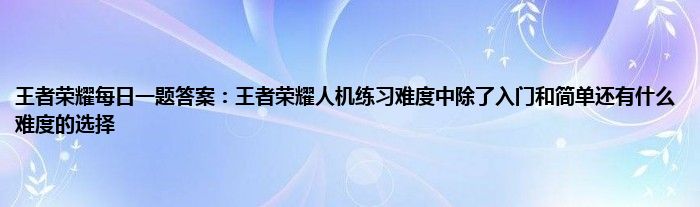 以上就是王者荣耀每日一题答案:王者荣耀人机练习难度中除了入门和简单还有什么难度的选择的推荐,相信通过王者荣耀每日一题答案:王者荣耀人机练习难度中除了入门和简单还有什么难度的选择这篇文章能帮到你,也欢迎对游戏很感兴趣小伙伴们一起来探讨。