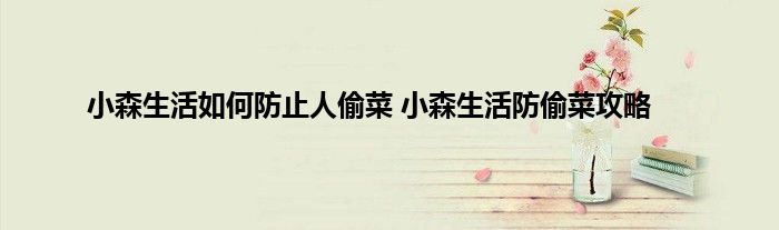 小森生活如何防止人偷菜?小森生活游戏里的菜都是自己种的,不过这些菜如果被偷了的话我们的收益就会减少,因此不少的玩家都想要知道怎么防止别人来偷。下面就是具体的防偷菜攻略了,希翼大家喜欢。