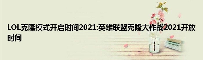 2021年4月LOL克隆大作战模式开启时间