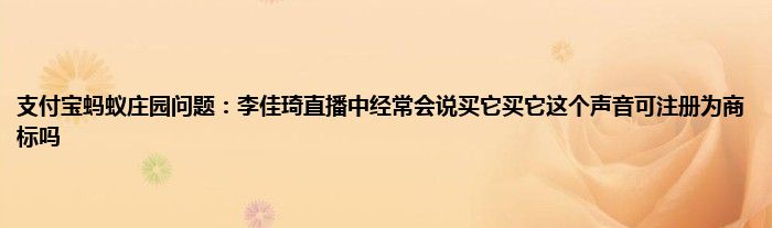 以上就是支付宝蚂蚁庄园问题:李佳琦直播中经常会说买它买它这个声音可注册为商标吗的推荐,相信通过支付宝蚂蚁庄园问题:李佳琦直播中经常会说买它买它这个声音可注册为商标吗这篇文章能帮到你,也欢迎对游戏很感兴趣小伙伴们一起来探讨。