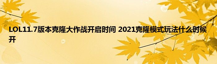 2021英雄联盟克隆大作战模式什么时候开启?英雄联盟11.7版本已经正式开启,这次版本也会开启一个特别的模式给玩家,新的克隆大作战应该是很多玩家期待的。不过这个模式并不是直接开放的,而是有一定的开放时间,下面就来看看具体的模式开启时间吧。