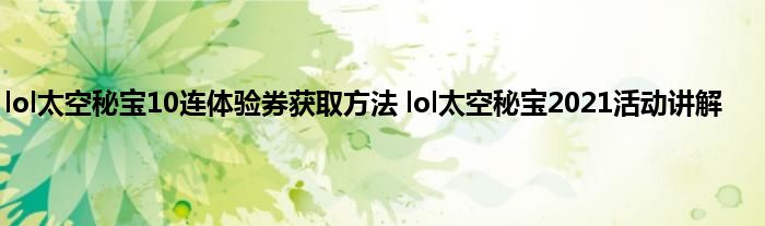 lol太空秘宝10连体验券怎么获得?lol太空秘宝活动已经开启,这次的的秘宝活动有一个很特殊的10连券可以领取体验。如果10连的奖励不错还能消耗钻石获得奖励,那么具体的体验券怎么获得呢?下面就是具体的猎取方法,希翼大家喜欢。
