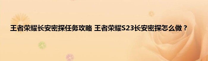 王者荣耀S23长安密探活动任务怎么做?S22赛季要结束了,S23赛季马上到来,新赛季带来了很多的新内容,同时也带来了新的活动和任务,其中有一个长安密探的任务,很多玩家不知道这个任务该怎么做,下面就来尾随小编一起看一下任务攻略吧。