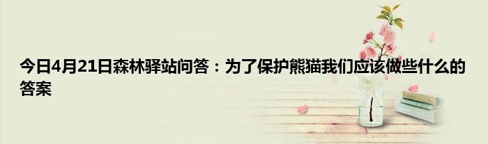 小编今天给各位玩家朋友们带来的是今日4月21日森林驿站问答:为了保护熊猫我们应该做些什么的答案,有记得的玩家朋友吗?不记得也没有关系,小编已经帮助大家把今日4月21日森林驿站问答:为了保护熊猫我们应该做些什么的答案找了出来,你只需要动动你的小手就可以轻松知道啦,快来瞧一瞧吧。