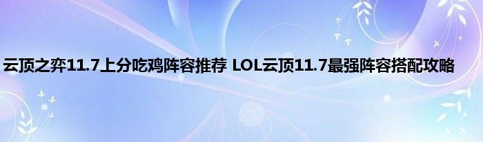 *LOL云顶之弈11.7阵容推举