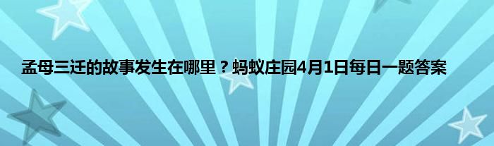 孟母三迁的故事发生在哪里?蚂蚁庄园今天的问题已经出来了,问的是孟母三迁的故事发生在哪?孟母即孟子的母亲,孟子小时候很淘气,他的母亲为了让他受好的教育,花了很多心血,曾三次搬迁,那么这个故事发生在哪里呢,下面就一起来看看答案吧。